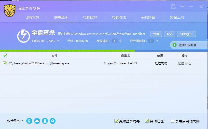 回复:系统加固 和行为防御 都哑火, 全盘查杀失败,右键查杀不稳定