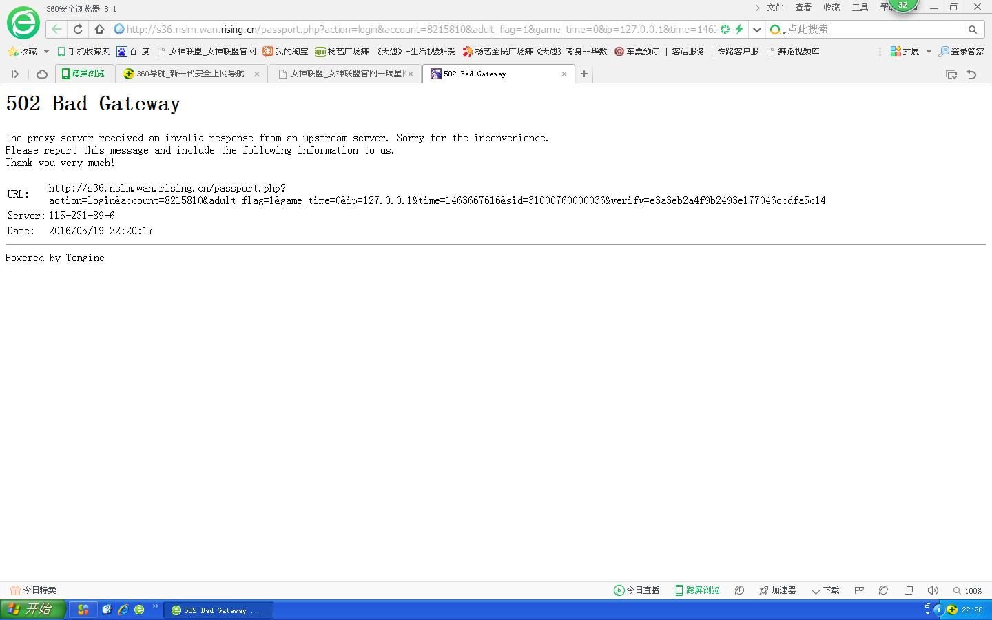 本人在其他瑞星区服也不能登入,错误代码一样是502