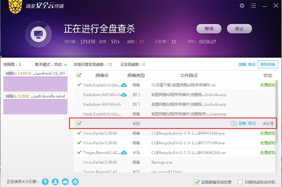 回复:全盘时 ,发现了 不显示的病毒,没有显示路径呢