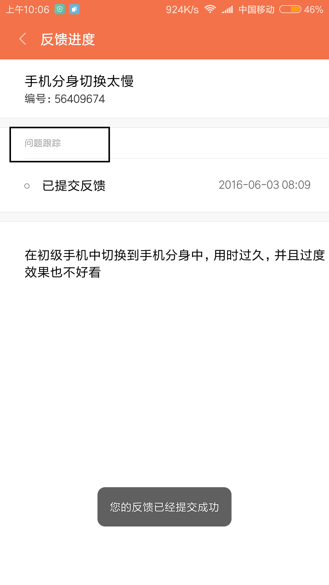 回复: 发现 小米有提交的bug 有问题跟踪功能了
