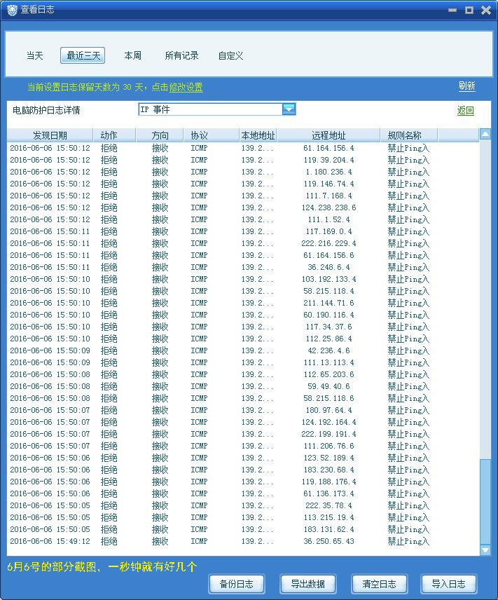 一台普通家用电脑为什么会有这么多不同的IP几乎同时在对我ping?