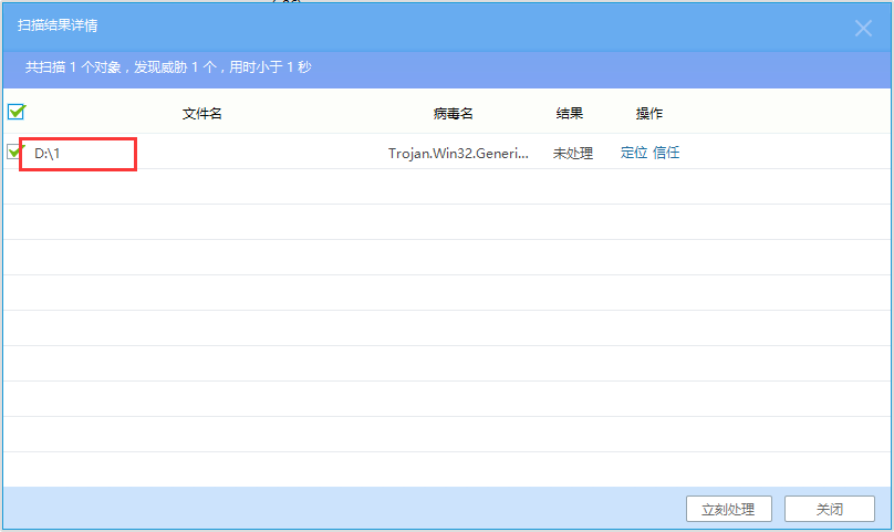 3、扫描 这个 第一步创建的文件夹 ,发现