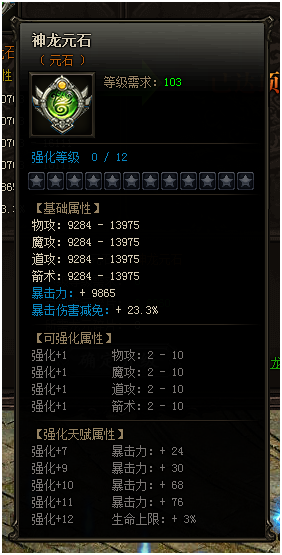 :可消耗龙元碎片,将“圣龙元石”升级为“神龙元石”