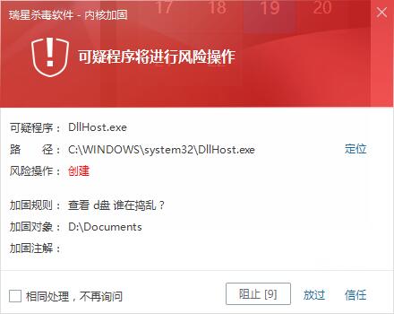 瑞星报警时 , 文件夹 已经 被创建上了, 只有点击 阻止 ,文件夹会消失 !!!