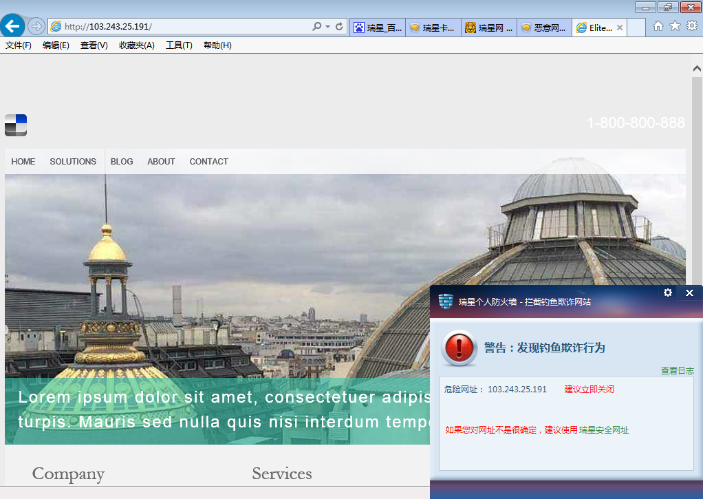 瑞星,你不要堕落成360流氓。连个测试主页都误报成钓鱼欺诈!