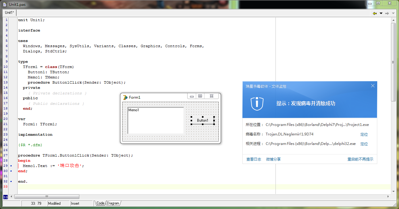 是delphi编译时报的吗?请描述下如何复现,及瑞星杀毒软件版本号