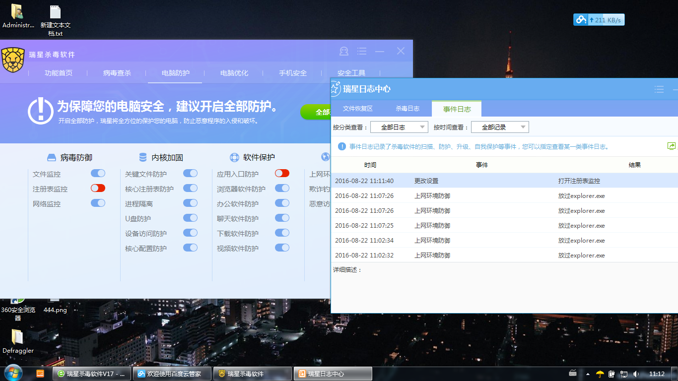 我多年使用瑞星的经验这些故障我猜重启电脑就OK了~吧
