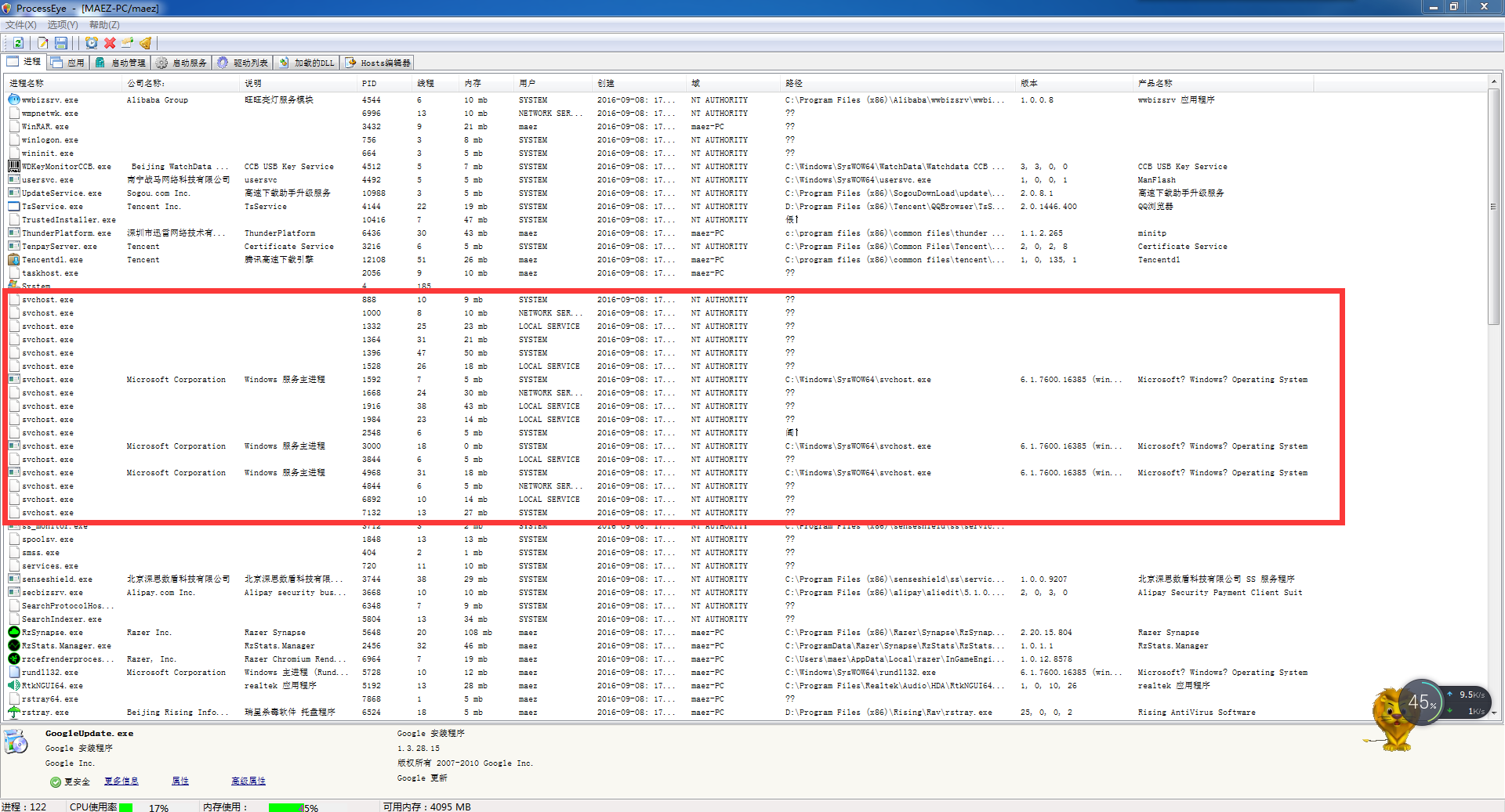 将不是微软的那个svchost.exe文件发来,它路径不正常。