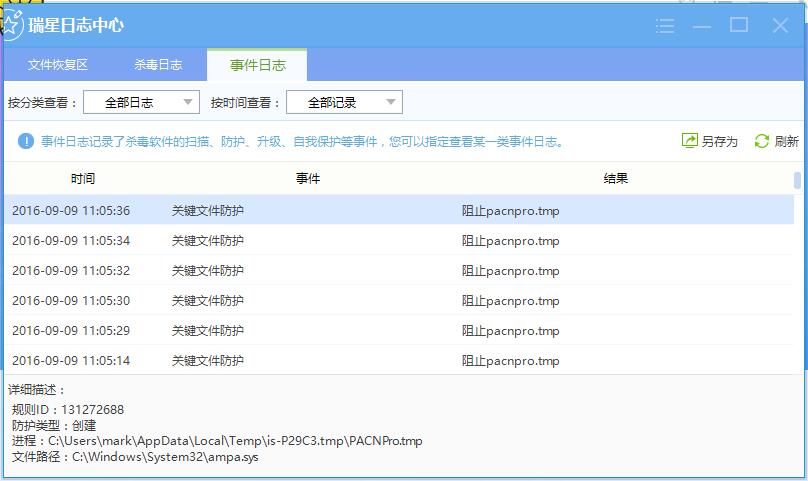然后瑞星没有任何提示,就拦截了 人家的修改 注册表操作!!!