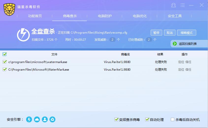 1、瑞星自身被感染,并且 日志程序不正常!!!