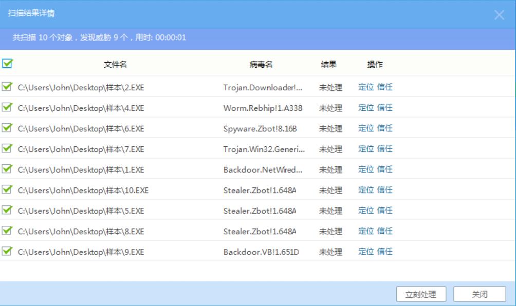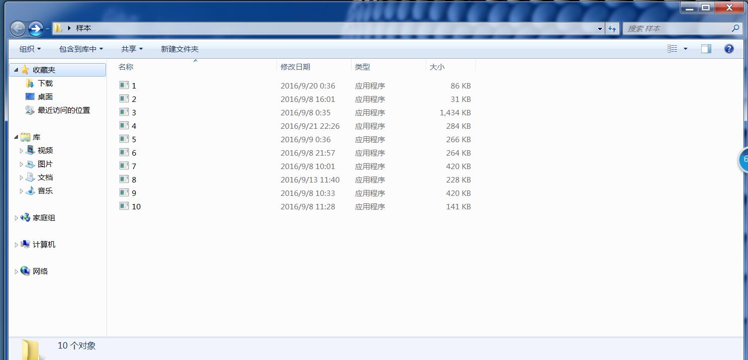 从外网找的,其中有木马,病毒还有一些盗号软件。 技术菜的抠脚,虽然保证都是恶意软件(病毒),其中可能有些并不适合主防测试。所以结果不一定具有普遍性。仅供参考。