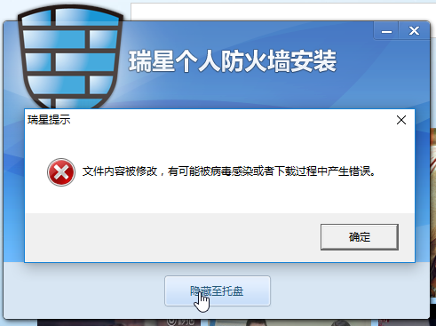 瑞星防火墙无法安装!安装失败提示如下图所示!