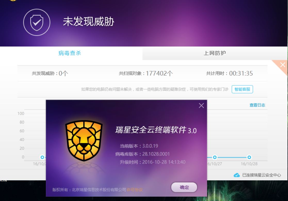 全盘扫描 17W的文件  瑞星云安全 花费31分钟左右  最近测试ESET 10(ESS) 只用了15分钟左右。需要优化下 查杀速度