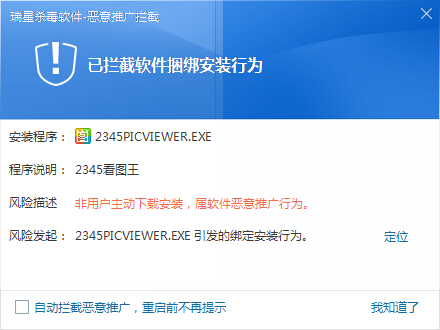 2、瑞星 第一遍 有 ui 弹窗提醒,第二次 就不提醒了 ,但是 还是再拦击中