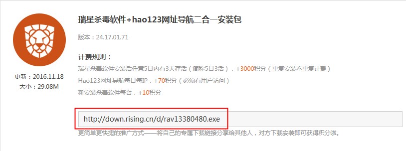 大麦子,不是您说的这个样子。我是这样想的,瑞星系列不是有链接下载嘛!指的是这里哈!同理,瑞星其它产品也可以这样滴。