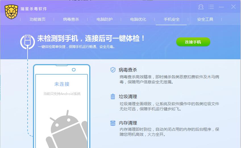瑞星v17连接手机居然没反应,我已经重装了驱动、开启了usb调式,我是win7系统