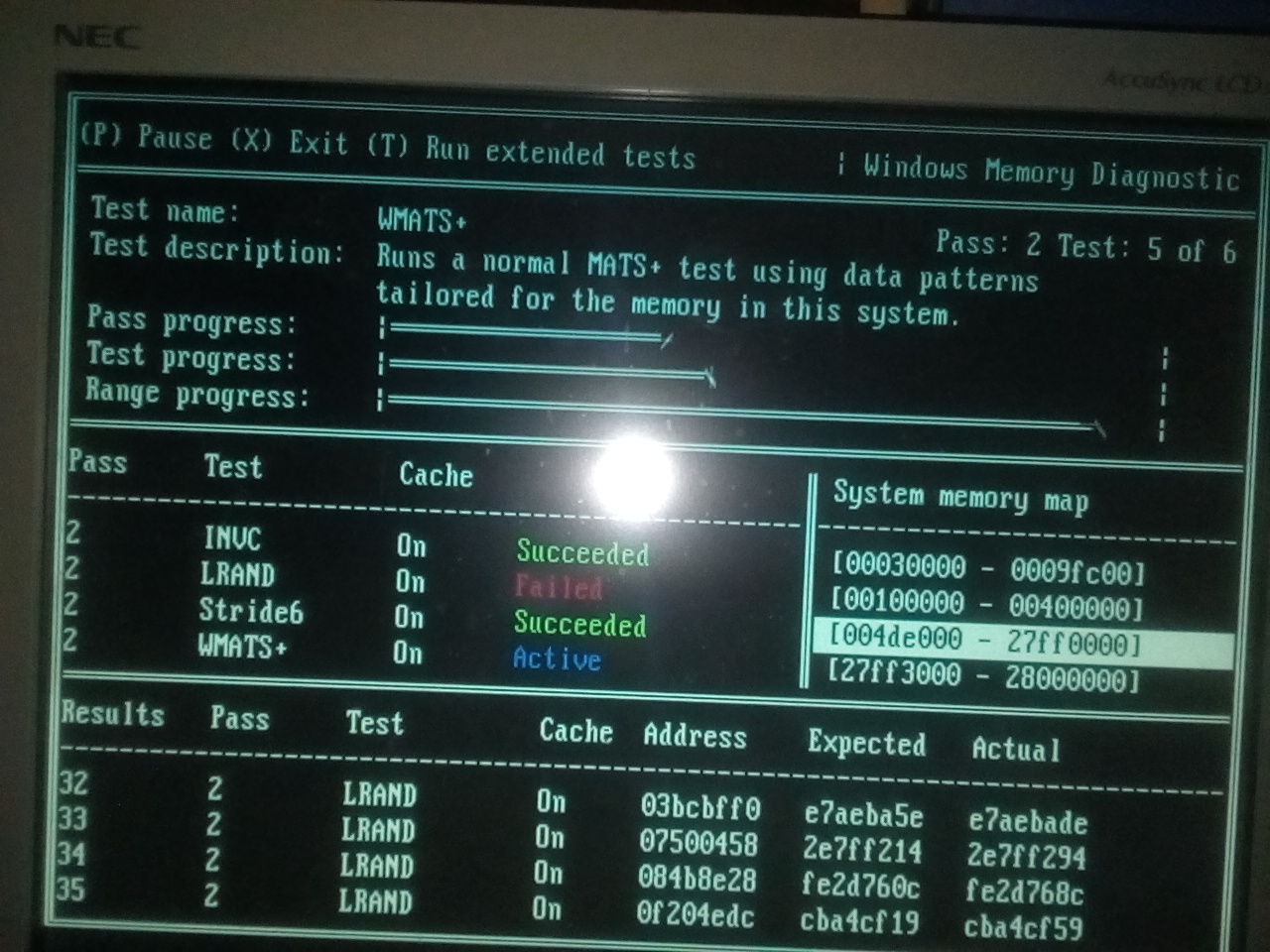 热心的高手 求您回答一下呗:一台很老的台式机,memory内存检测出现的问题: