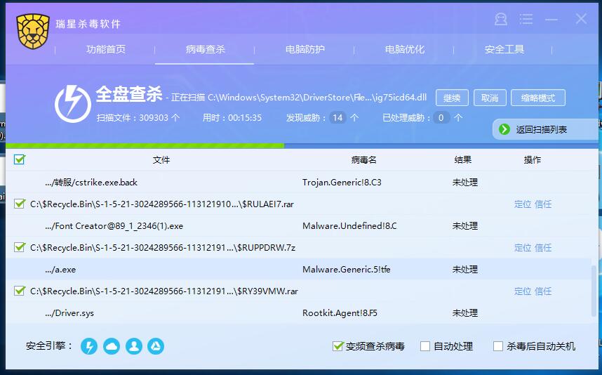 在Win10--64 下, 瑞星全盘扫描时 ,卡住不动了