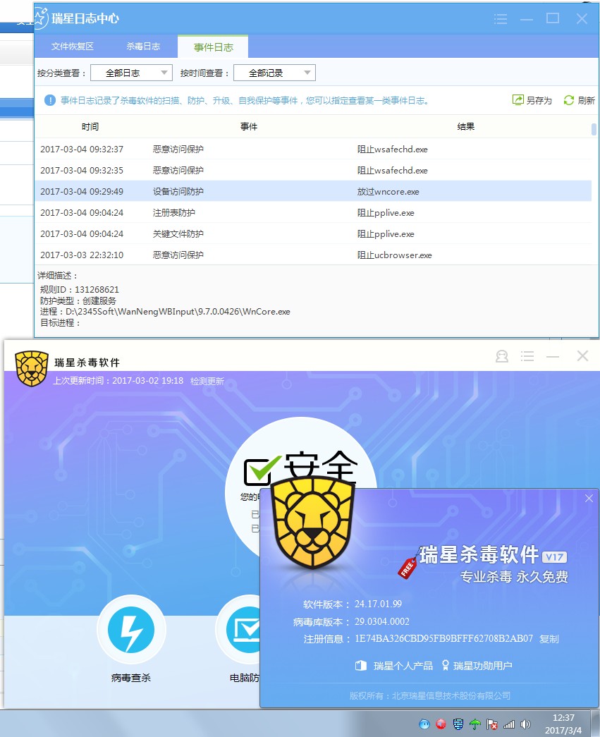 更新万能五笔软件时,疑似被瑞星联盟版误杀。(如图所示)
