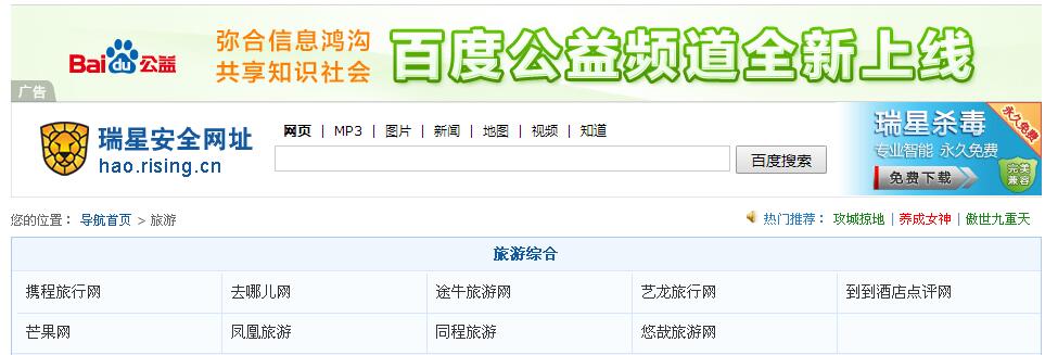 使用瑞星导航查看旅游一栏时,发现没有飞猪旅游网站。建议增加对它的支持。谢谢!