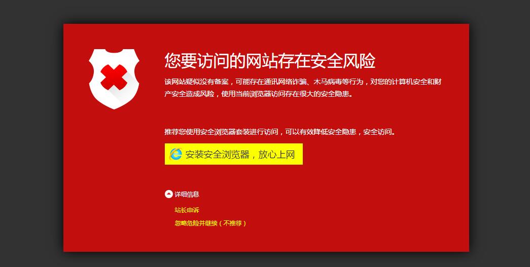 访问未备案的网站时会提示,但也给坚持访问的用户留了入口。这是拦截规则中的一条。