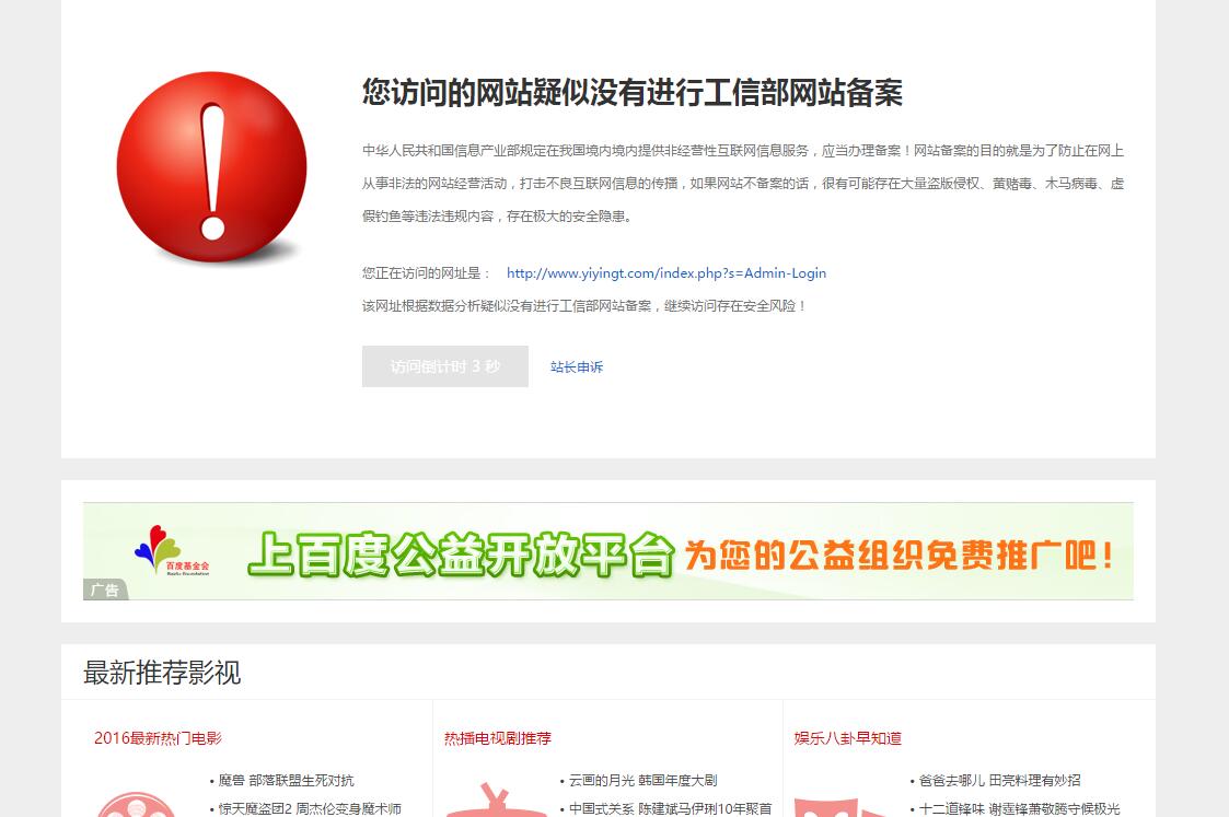 目前的规则是未备案的会提示,但也给坚持访问的用户留了入口。