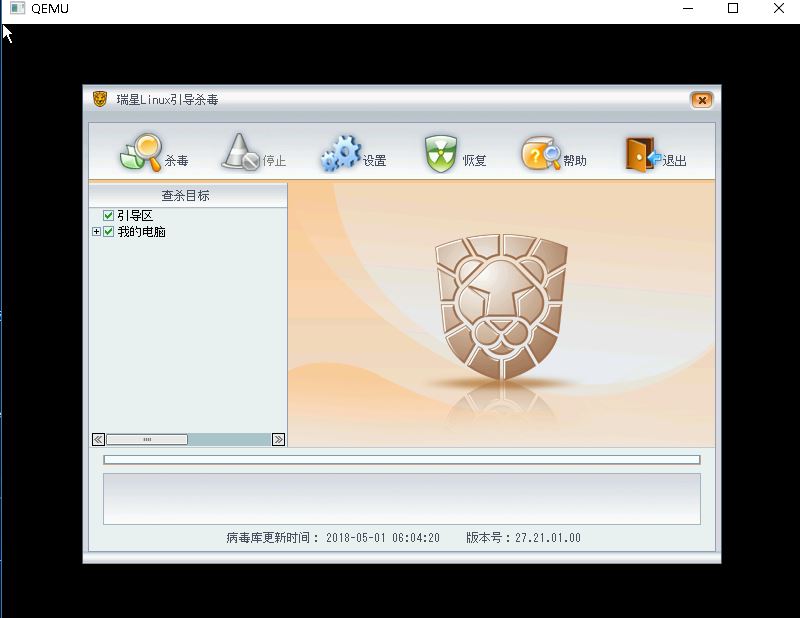 瑞星Linux引导杀毒磁盘镜像,病毒库更新到2018年5月1日。