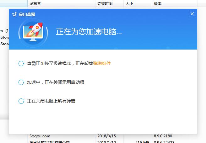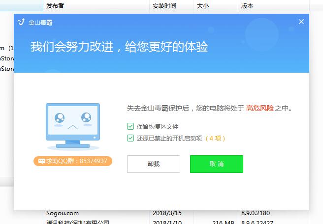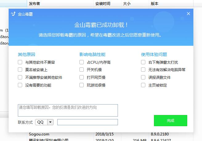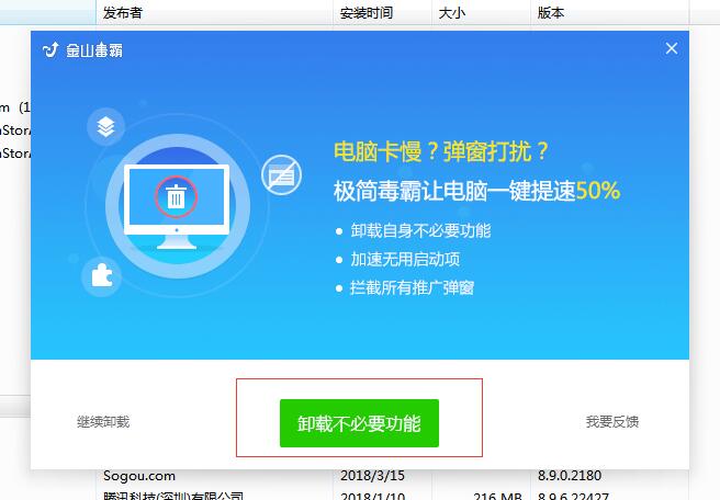 点击卸载程序时, 金山为了留住用户提供了 ,关闭 毒霸 冗余功能的程序