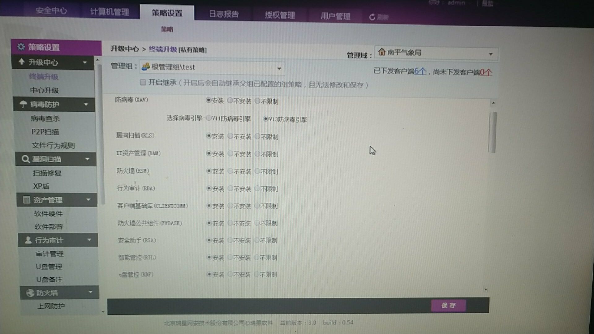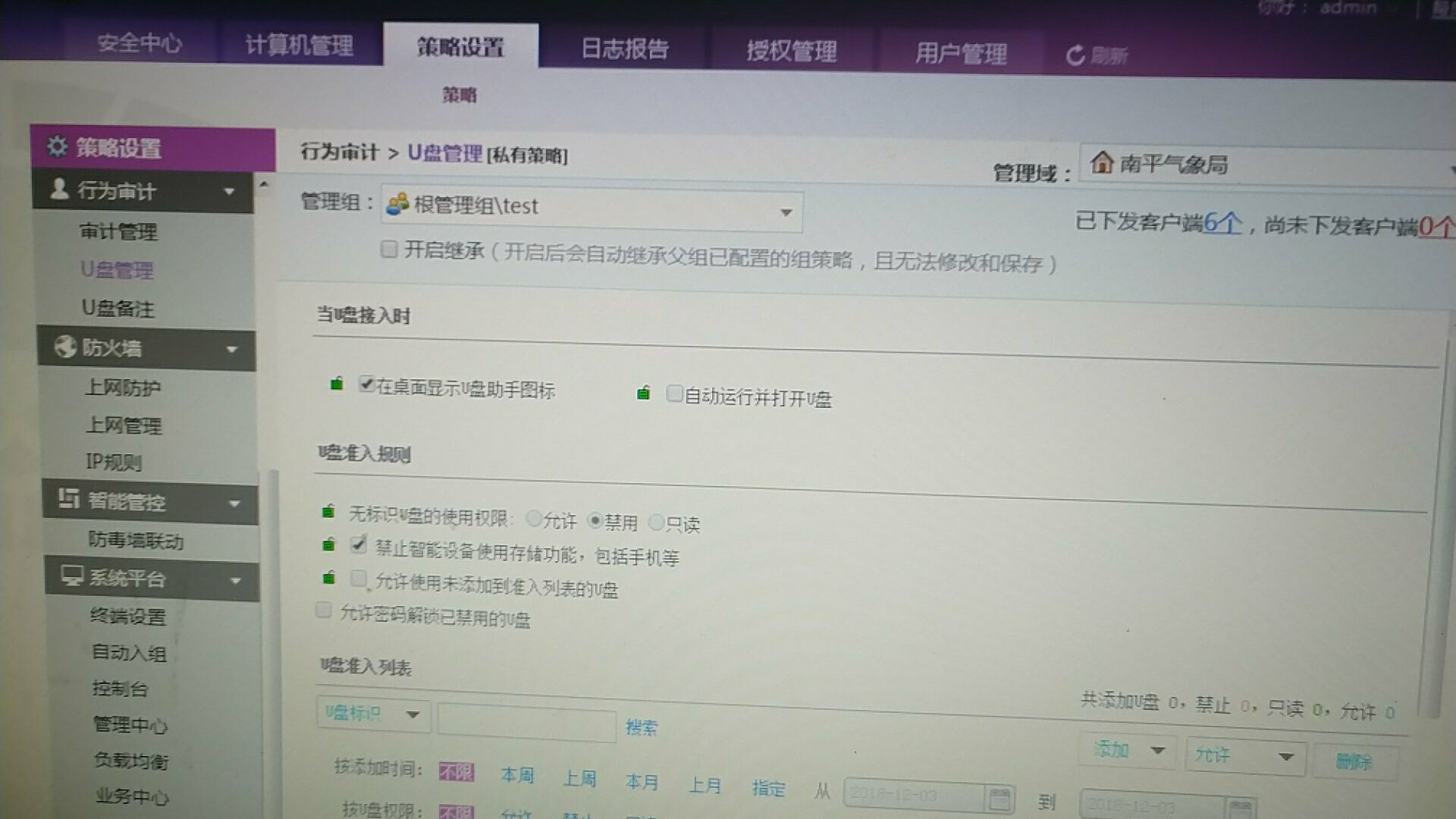 今天安装ESxxx.54版本的ESM。开启U盘管控功能,禁用U盘。客户端策略已经同步,有的终端可以禁用,有的客户端不能禁用U盘,请问是什么原因。测试的终端在同一个分组。