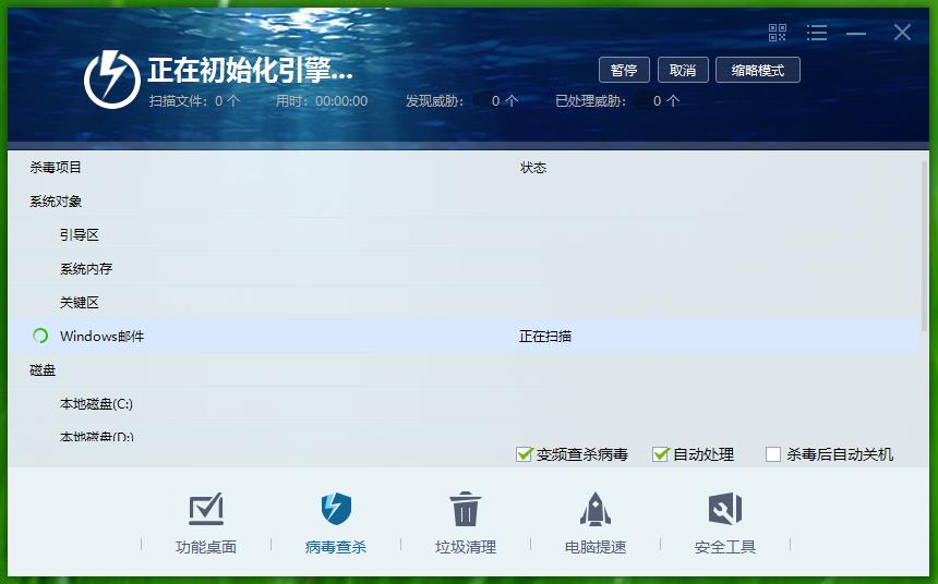 回复:不管使用全盘还是快速或自定义杀毒 都卡正在初始化引擎