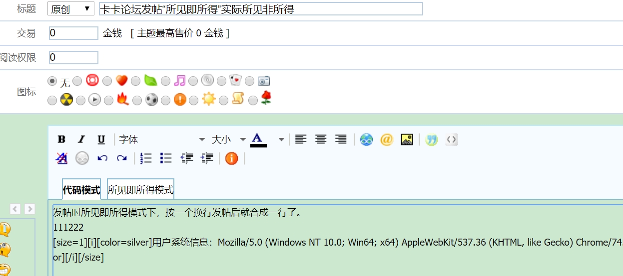 [原创] 卡卡论坛发帖“所见即所得”实际所见非所得