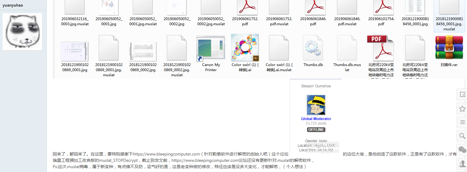 [求助] 中了勒索病毒,网上查找无果,估计是新变种,后缀是.muslat