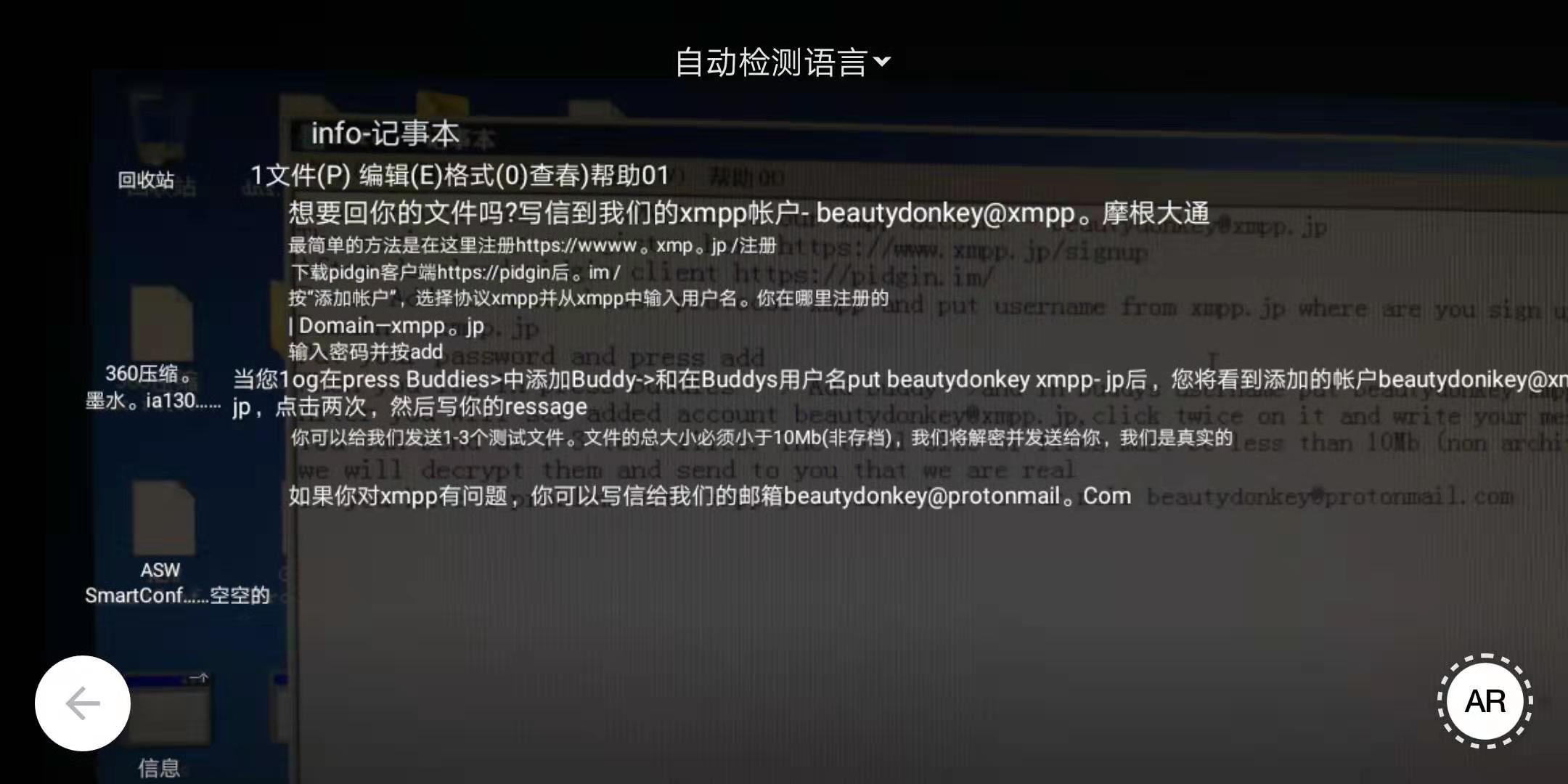 中了勒索病毒,文件全部被加密锁定,无法拷贝出来,只能拍照,急求大神!!