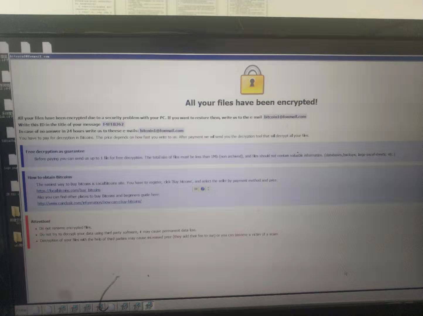 麻烦各位大神解救一下,附件上传了勒索信息和勒索病毒的样本,感谢!