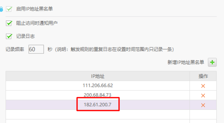 更新一下:IP黑名单能起作用,但勾上了选项也没有记录日志