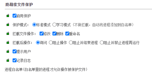 ESM365的勒索防护功能不同于瑞星之剑,目的都是防勒索软件但是实现方法不一样。这是ESM365的: