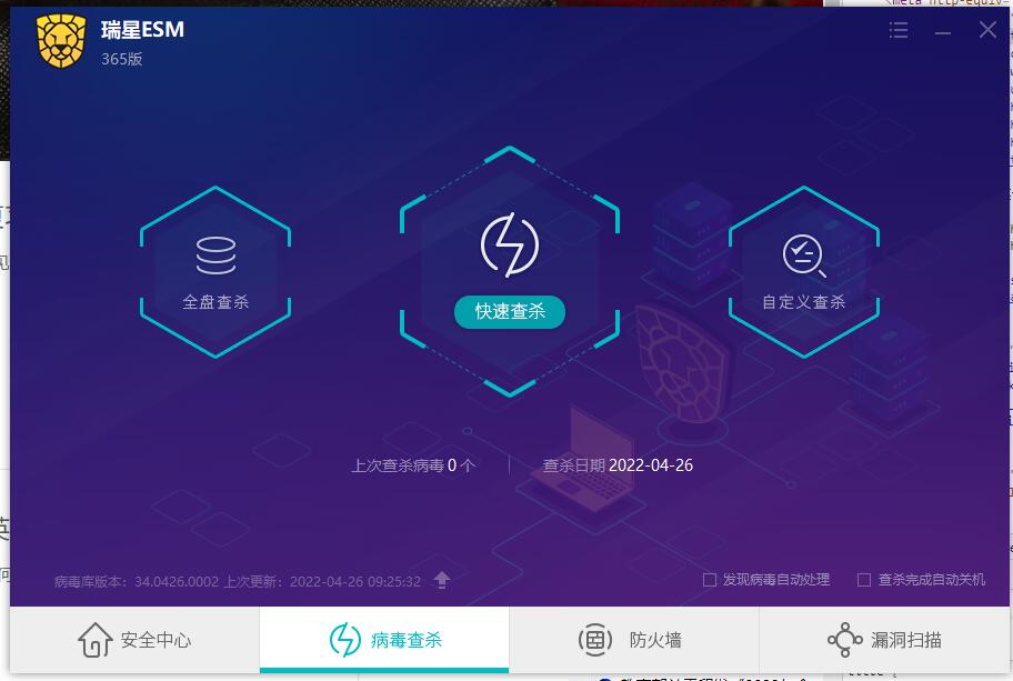 全盘进行到一半的时候,瑞星退出了扫描,直接显示全盘按钮 那个页面;再次点击扫描已经没有反应了