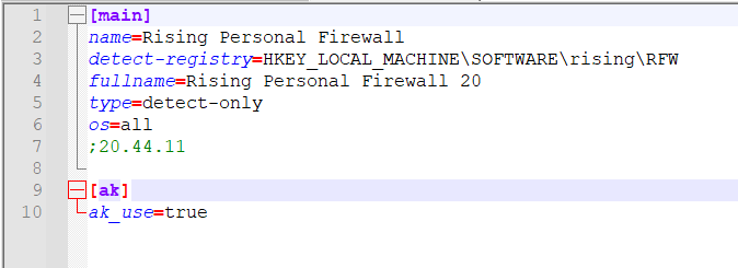 然后我看了下卡巴检测的逻辑,检测到注册表存在HKEY_LOCAL_MACHINE\SOFTWARE\rising\RFW才会报,但是注册表里已经全盘搜过了,并没有任何瑞星相关的注册表项这是什么原因呢?