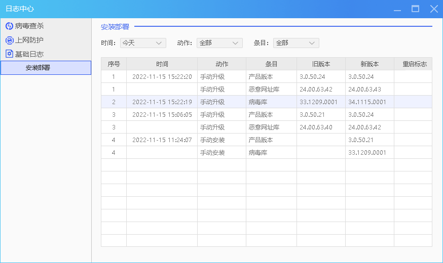 问题现象: 在线升级时病毒库和恶意网址库未整合在一起升级