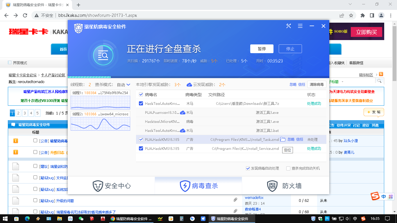 问题现象: 全盘杀毒过程中已处理文件显示为未处理。