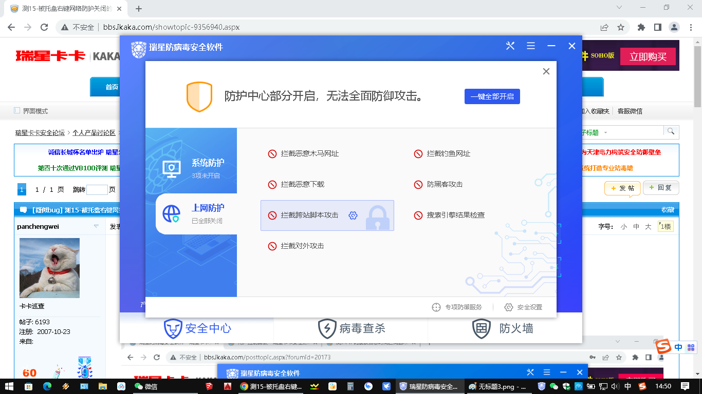 测15-被托盘右键网络防护关闭的选项无法通过主程序一键开启功能打开
