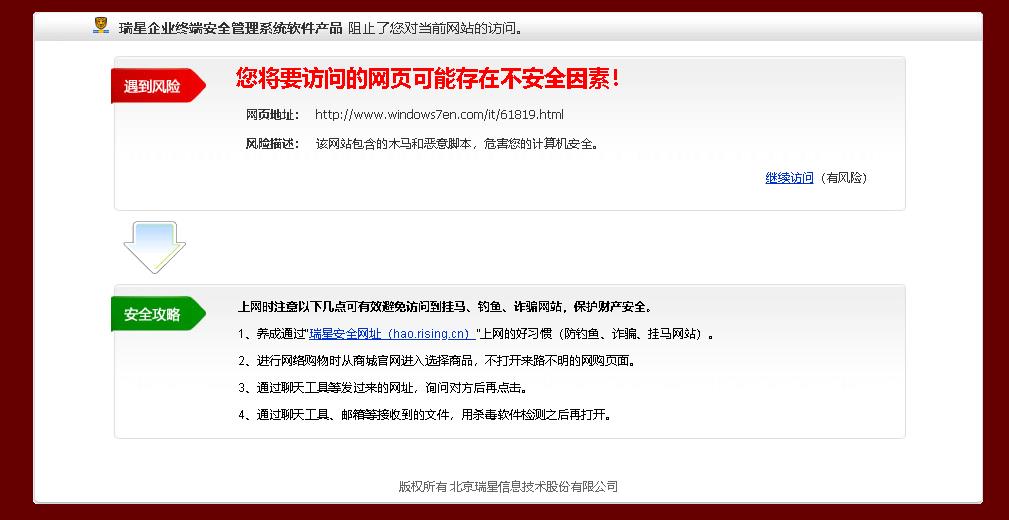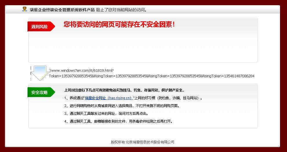 操作系统及补丁情况:WIN10 21H2(操作系统内部版本 19044.1889)浏览器及版本:搜狗浏览器 11.0.1.34700(已去除搜狗保护)瑞星软件版本:3.0 BUILD 50.24涉及的其他软件及版本:WIN11、DiskGenius 5.4.6.1441 x54问题现象: 建议网址拦截能只弹一次,剩下的做好防挂马之类的屏蔽工作就好啦 毕竟,现在下载站打广告链接的太多了。。很容易“误杀”。。。