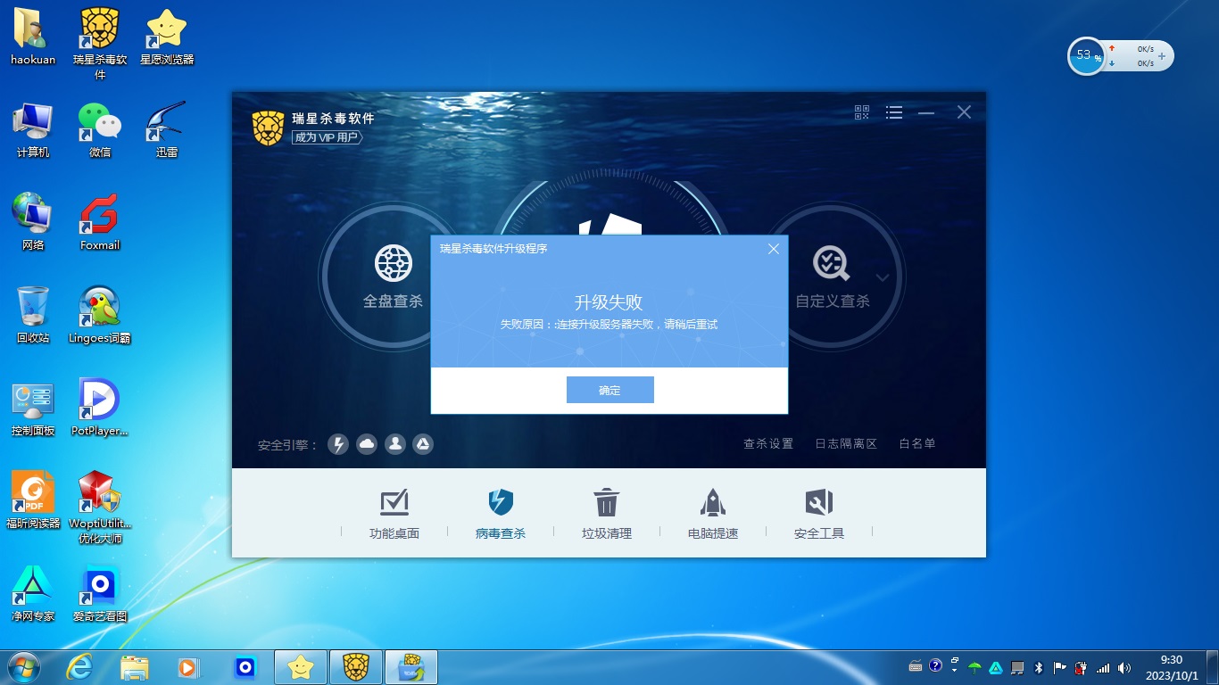 [疑似bug] 瑞星杀毒v17无法升级,可以是升级服务端出现问题。时间9月28号到10月1号。