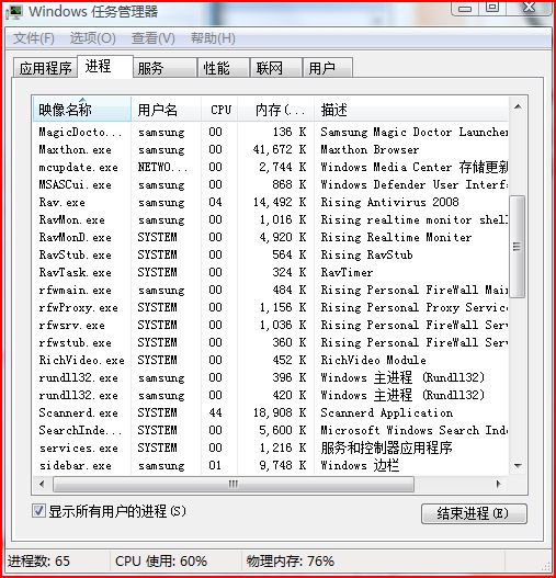 我们可以很明显看出,瑞星查毒时,CPU占了快50%了,如果CPU配置差点就没有办法运行了,最痛心就是占CPU太大.唯一的优点就是内存占的一点都不大,非常小。希望反映一下和改进一下。谢谢!