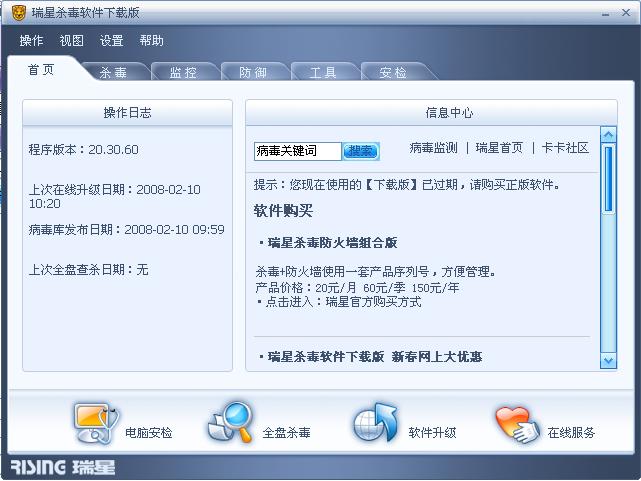 瑞星发布后提供了免费从07.11起免费3个月 一月份就停止免费服务了