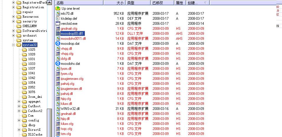 最近有朋友求助说杀毒软件在升级过程中,有时系统黑屏或蓝屏,升级不了。经过分析这种情况有可能是病毒原因造成的。有一个病毒文件msosfpids32.sys会注册为系统服务,目的是将病毒文件msosdrop00.dll隐藏。这两个文件就可能导致系统蓝屏。
