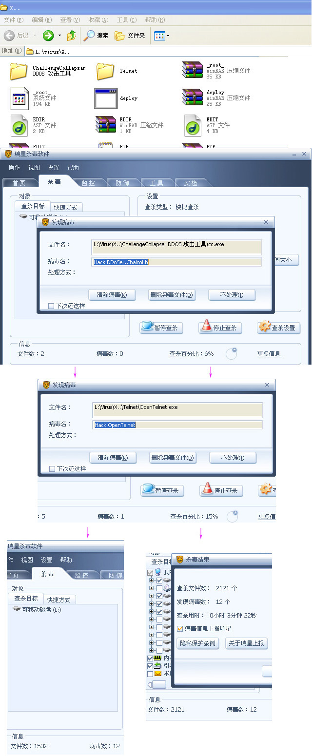 不过,在X.文件夹里面可以正常运行瑞星的 “马吉斯(Worm.Magistr)”病毒专杀工具:MagistrKiller.exe文件、橙色八月专用提取清除工具:orangeaug.com文件、恶意程序My123专杀工具 V1.0:My123Killer.exe文件,等等这些工具。