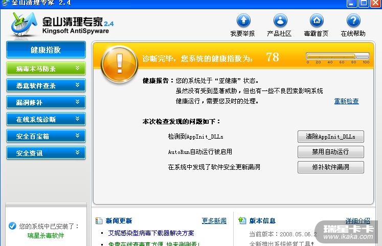 用金山清理专家查到以下的问题,但是修复不了.请问图上的问题是正常的么?是瑞星所带的么?谢谢