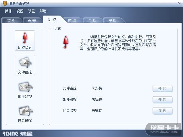 我的是瑞星下载版,30的那种.最近一点全盘杀毒就自动关闭,我就重装了软件,可没监控了,直接就是文件未安装,最好顺便说说自动关闭的原因,网上也有好多这情况,我电脑盲,高手帮帮我,谢了..