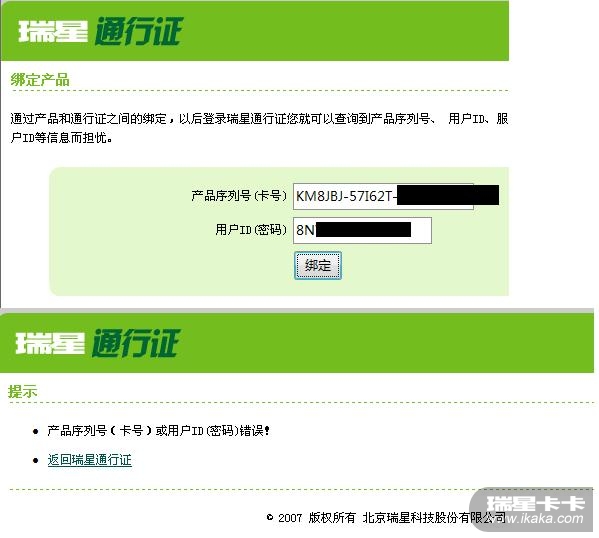 回复: 求助:我的瑞星杀毒软件下载版序列号无法绑定到通行证里面